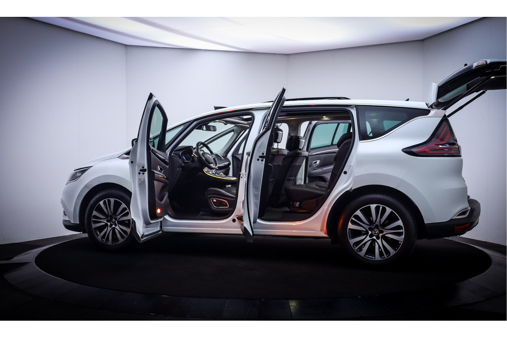 U hebt volop de ruimte in deze Renault Espace. De uitstekende prestaties van deze auto komen van de viercilinder benzinemotor en de automatische transmissie. De auto is voorzien van een mooie en comfortabele lederen bekleding. Deze Renault Espace legt bestuurder én bijrijder compleet in de watten. De verwarmbare voorstoelen zijn voorzien van massagefunctie. De bagageruimte is toegankelijk via een comfortverhogende elektrische achterklep. Slim en gemakkelijk, zo'n derde zitrij! De uitmonstering van deze auto wordt gecompleteerd door onder meer elektrisch bedienbaar panoramadak, 19 inch lichtmetalen velgen, LED koplampen, panoramische voorruit, adaptief dempingsysteem en donker getint glas achter.