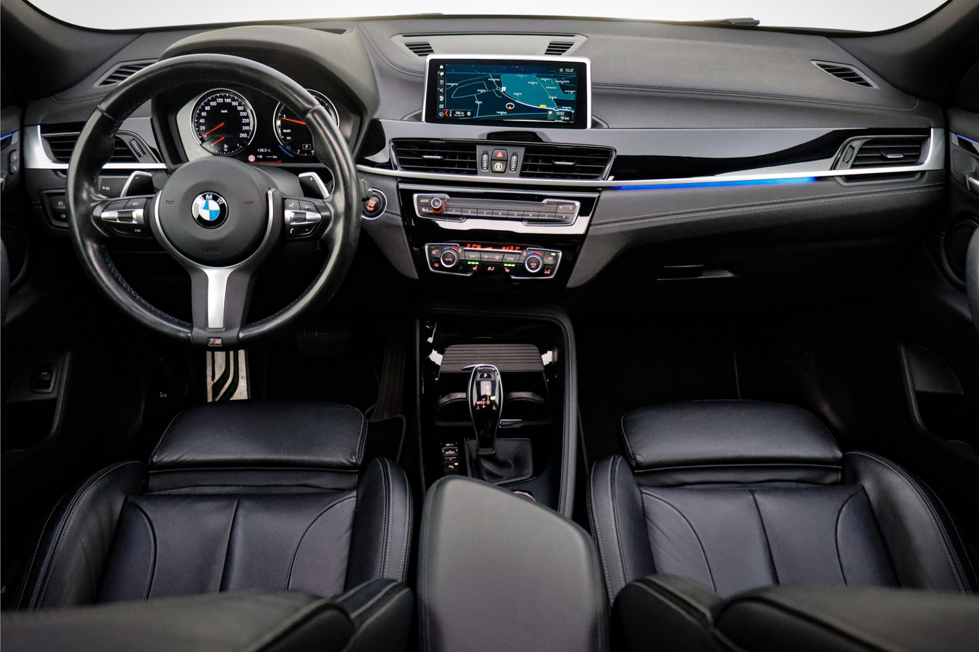 Inparkeren? Met de achteruitrijcamera heeft u er geen omkijken meer naar! Spraaksturing is onderdeel van de uitrusting van deze auto. Met uw stem kunt u de belangrijkste voertuigfuncties bedienen. In één oogopslag weet u de complete systeemstatus van deze auto. Dankzij Connected Services. Deze auto kent elke bestemming als z'n broekzak, dankzij het full map navigatiesysteem. Met automatische airconditioning hoeft u alleen de gewenste temperatuur in te stellen. Het systeem doet de rest. Deze BMW is voorzien van regensensor, cruise control, sportstuurwiel en boordcomputer.