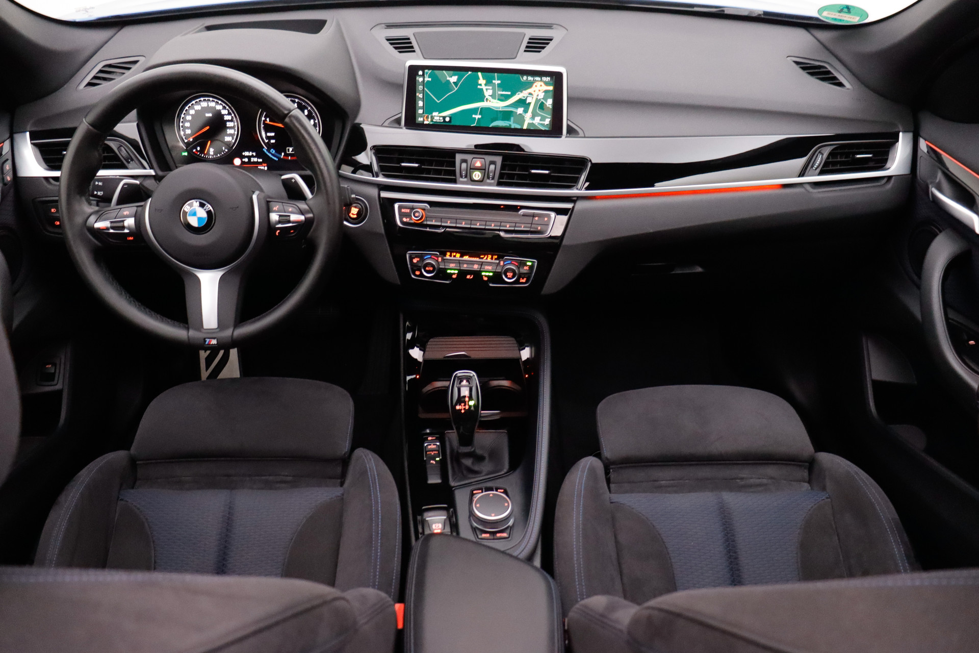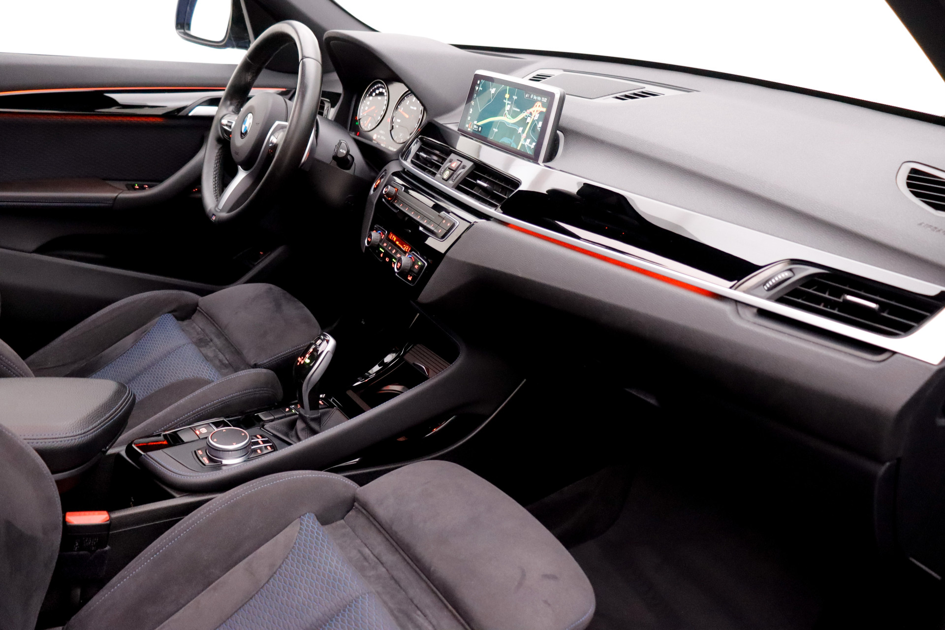 De achteruitrijcamera maakt inparkeren gemakkelijker dan ooit. Vergeten af te sluiten? Bandenspanning onvoldoende? De speciale app geeft u direct een seintje met behulp van Connected Services. Voor de veiligheid op de weg is het goed dat u uw ogen op de weg kunt houden en uw handen aan het stuur. Want het audio-installatiesysteem, met DAB-ontvangst, en het full map navigatiesysteem bedient u vanaf het stuurwiel en met spraakbediening. Omdat u nu eenmaal niet overal ogen heeft, is deze BMW X1 voorzien van een achteropkomend verkeer waarschuwing die registreert wanneer de afstand tot uw achterligger te krap is. De automatische airconditioning zorgt voor een behaaglijk klimaat in de auto. Natuurlijk behoren sportstuur met schakelpaddels, regensensor, cruise control, centrale deurvergrendeling met afstandsbediening, boordcomputer en lederen versnellingspook ook tot de uitrusting van deze complete auto.