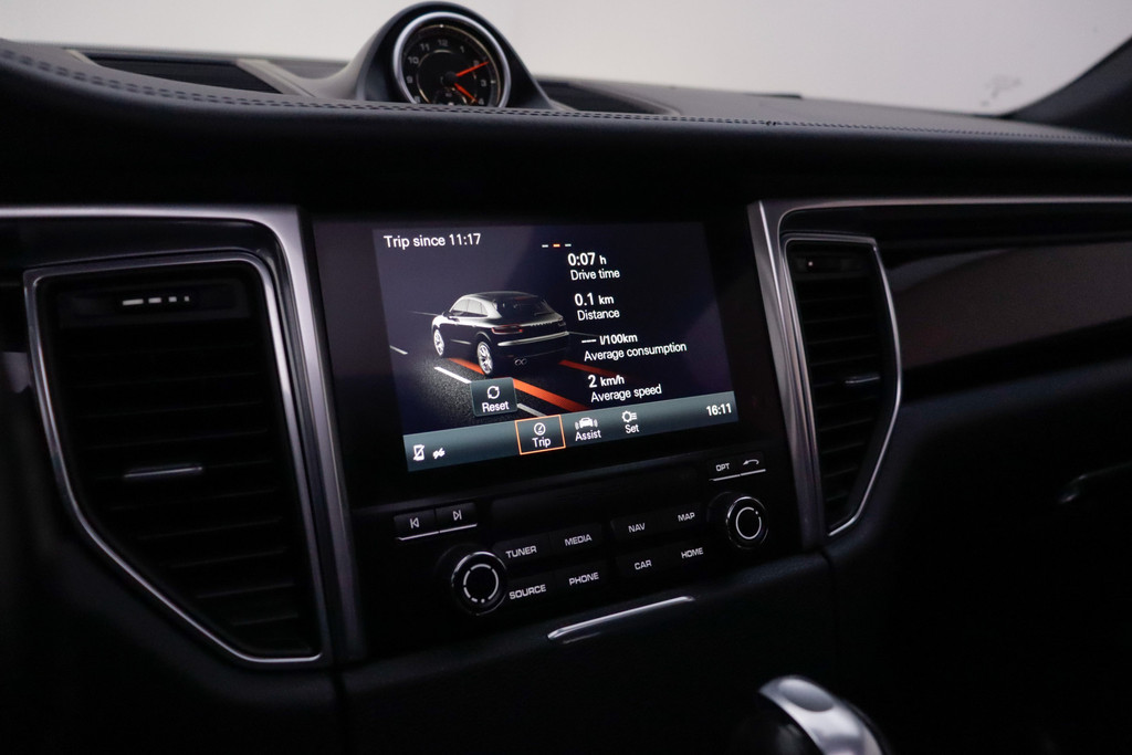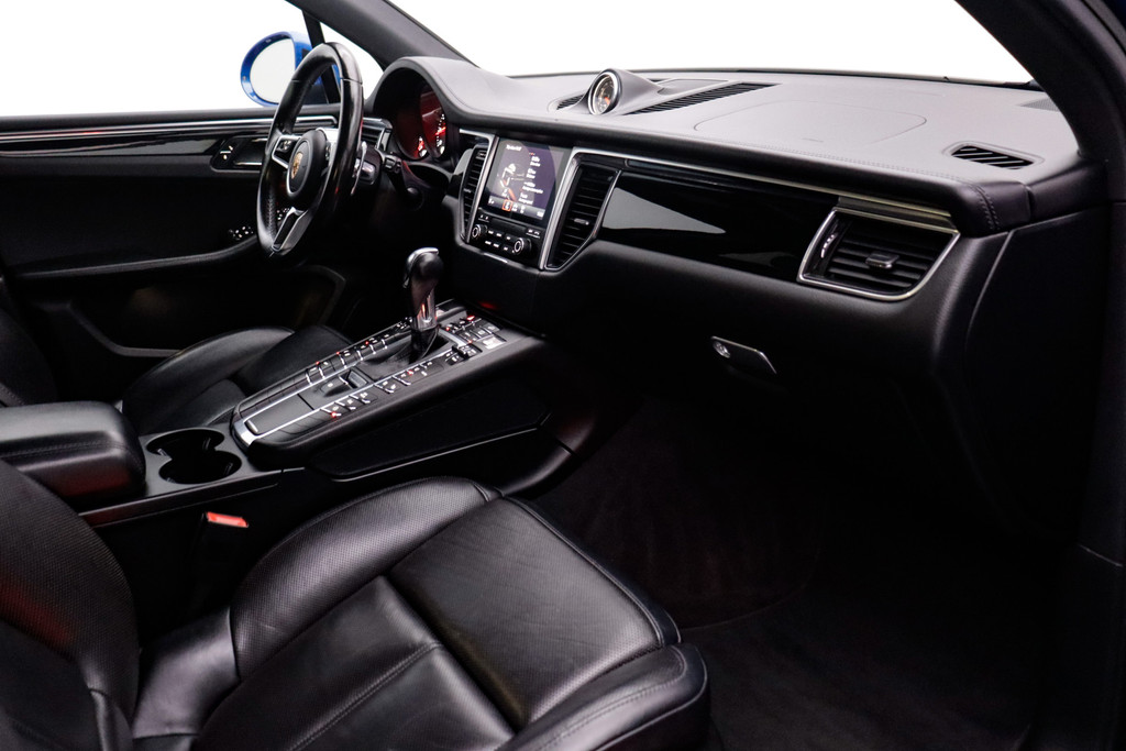 Robuust, luxe en hoogstaande technologie samengebracht in deze Porsche Macan, een weerspiegeling van de excellente kwaliteit van Duitse automerken. Een krachtige motor geeft deze auto zijn sportieve prestaties. Binnenin zien we een fraai afgewerkt lederen interieur. Op koude en donkere dagen zijn de verwarmbare voorstoelen een uitkomst. De comfortstoelen van deze Porsche Macan staan bekend om zijn goede zithouding. Licht, lucht, ruimte en gemak wordt verzorgd door het elektrisch bedienbare glazen panoramadak. Met een druk op de knop gaat de elektrische achterklep open. In het donker zorgt de xenonverlichting voor een goed zicht op de weg. In deze Porsche profiteert u onder andere ook van: warmtewerend glas, zwarte hemelbekleding, dakspoiler, in delen neerklapbare achterbank en LED-achterlichten.