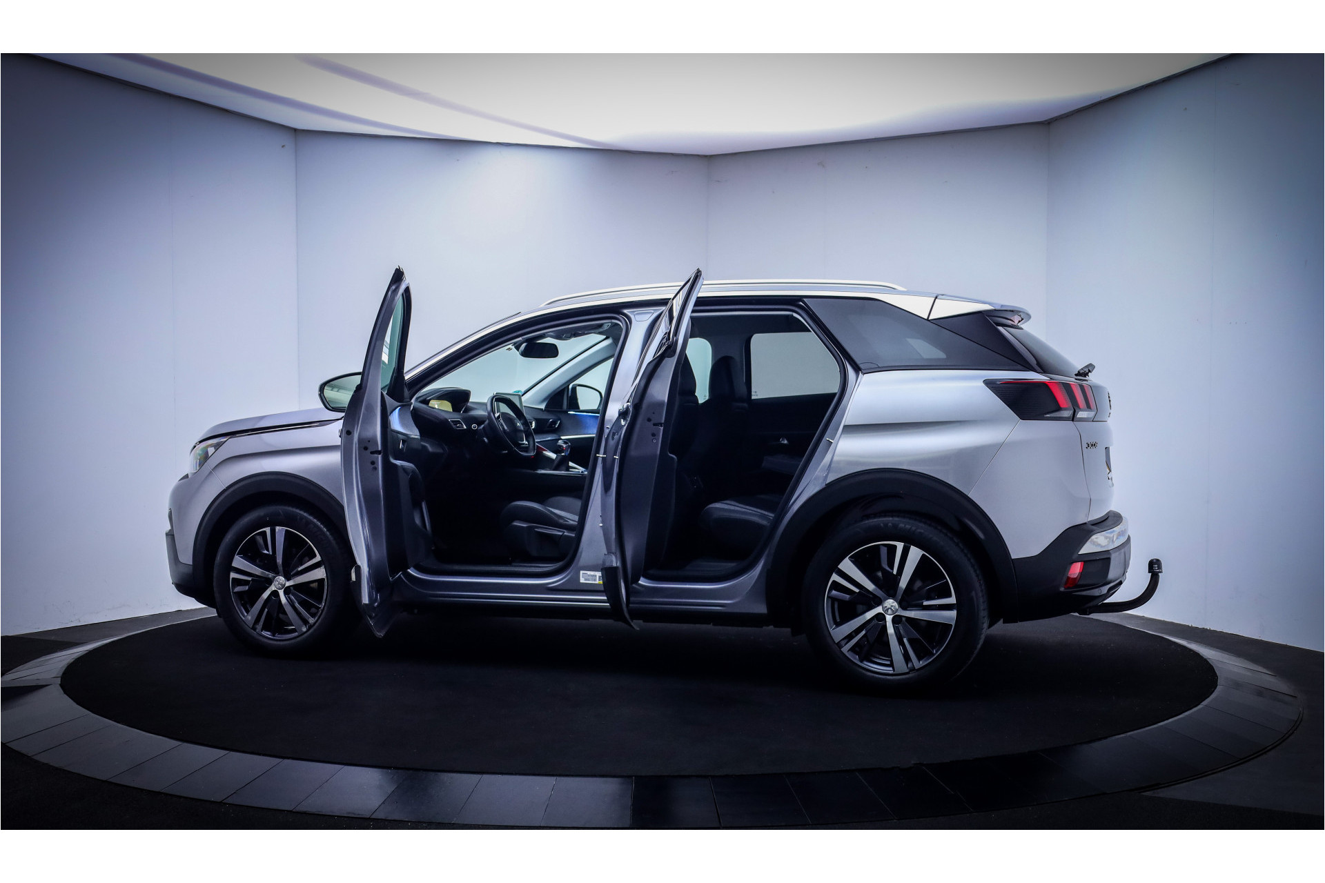 Snelheid, omgevingsinfo, navigatie en communicatie... Het digitale dashboard geeft alles realtime weer. De functie van deze 360 graden camera is vooral nuttig in smalle straatjes waar het zicht beperkt is. Als u regelmatig met een aanhanger of een fietsendrager op pad bent, is de afneembare trekhaak een praktische extra. In het zeldzame geval van een storing weet u nog eerder dan de monteur wat er mankeert. Uw smartphone met remote services geeft direct inzicht. Deze Peugeot is voorzien van knoppen op het stuur om het full map navigatiesysteem en het audiosysteem met DAB-ontvangst te bedienen. En deze auto heeft ook electronic climate control, regensensor, cruise control, keyless entry, automatisch dimmende binnenspiegel en lederen stuur als standaard uitrusting.