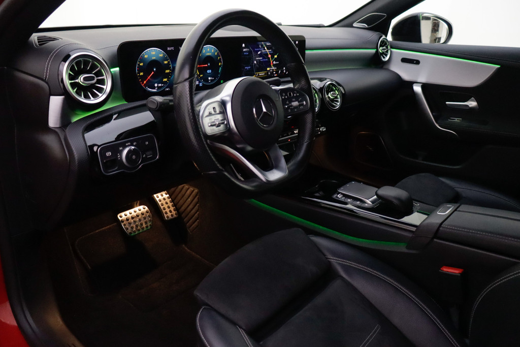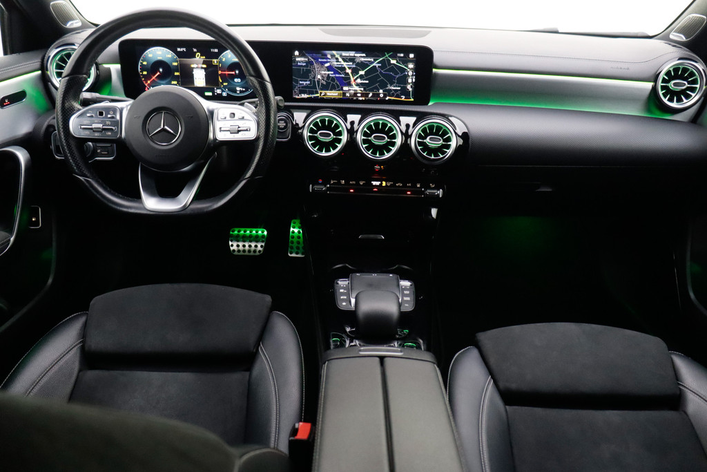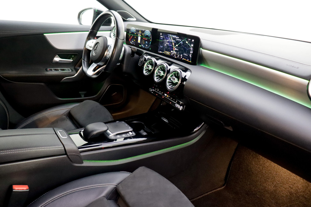 Voor deze Mercedes-Benz A-klasse moet u snel zijn, want die gaat aandacht krijgen. Net binnen, maar daar blijft-ie niet lang! De liefhebbers hebben het al gezien: de sportieve, stoere AMG-styling! De uitstekende prestaties van deze auto komen van de viercilinder benzinemotor en de automatische transmissie. Koude start? Niet met de verwarmbare voorstoelen! Voor het pittige uiterlijk én goed gesteund zitten zorgen de sportstoelen. Met matrix LED-verlichting rijdt u eigenlijk altijd met groot licht, dus maximaal zicht. Toch is verblinden er niet bij, want het systeem regelt de verlichting zo dat tegenliggers er geen last van hebben. De uitmonstering van deze auto wordt gecompleteerd door onder meer AMG-styling, donker getint glas achter, in delen neerklapbare achterbank en verstelbare lendensteunen.