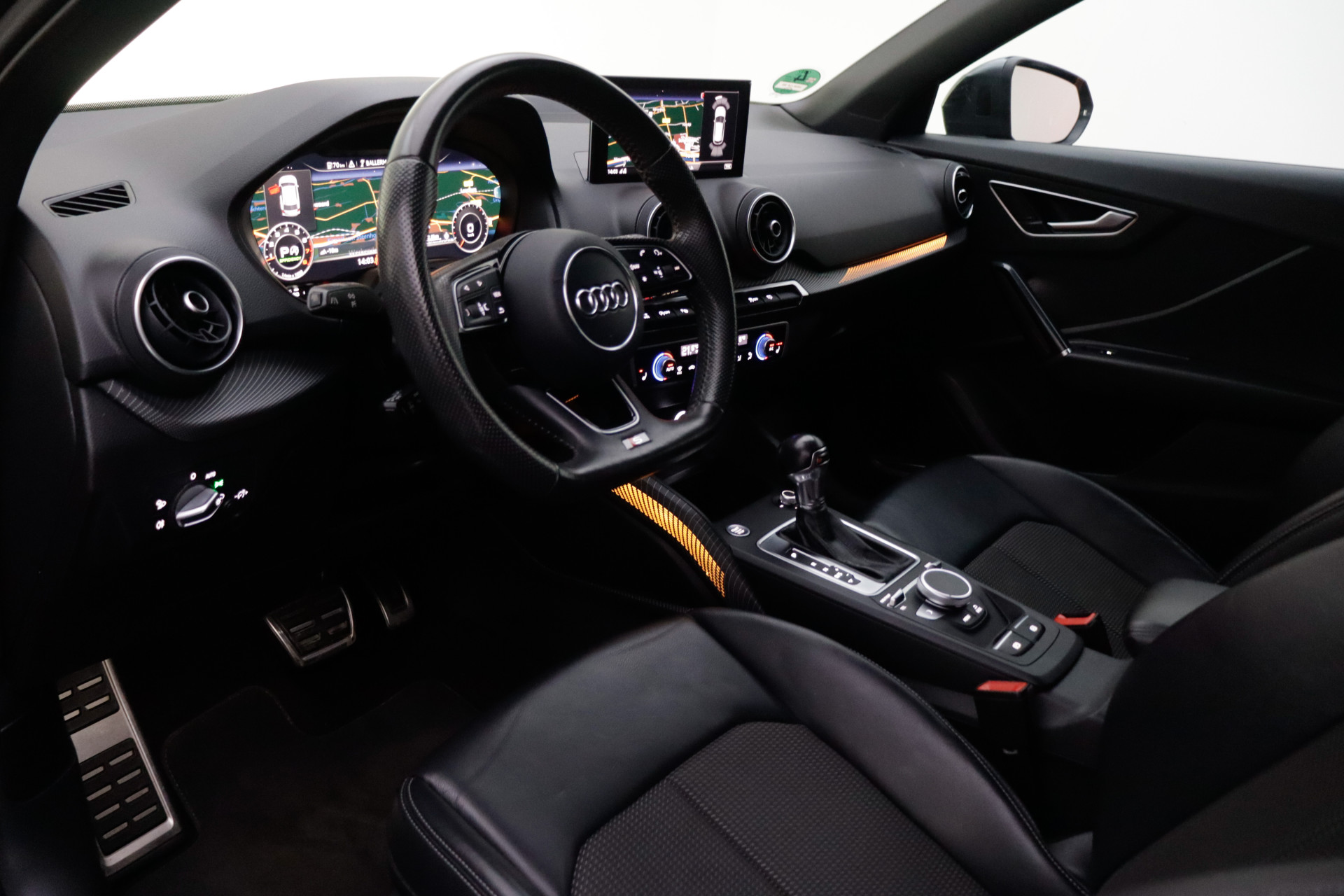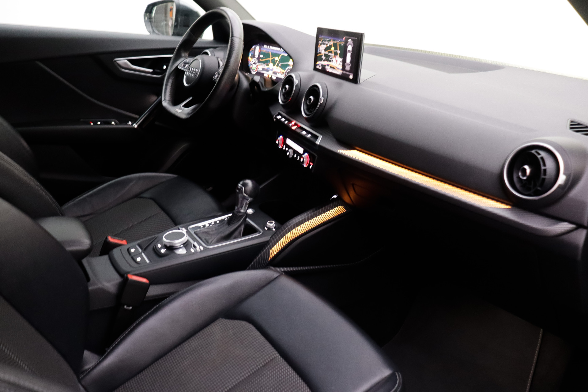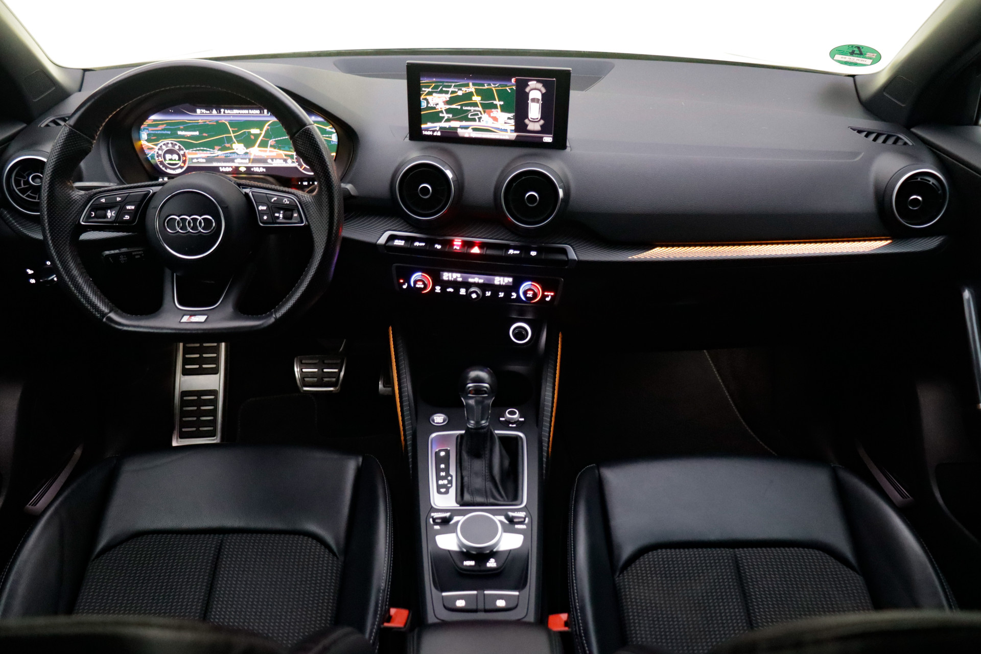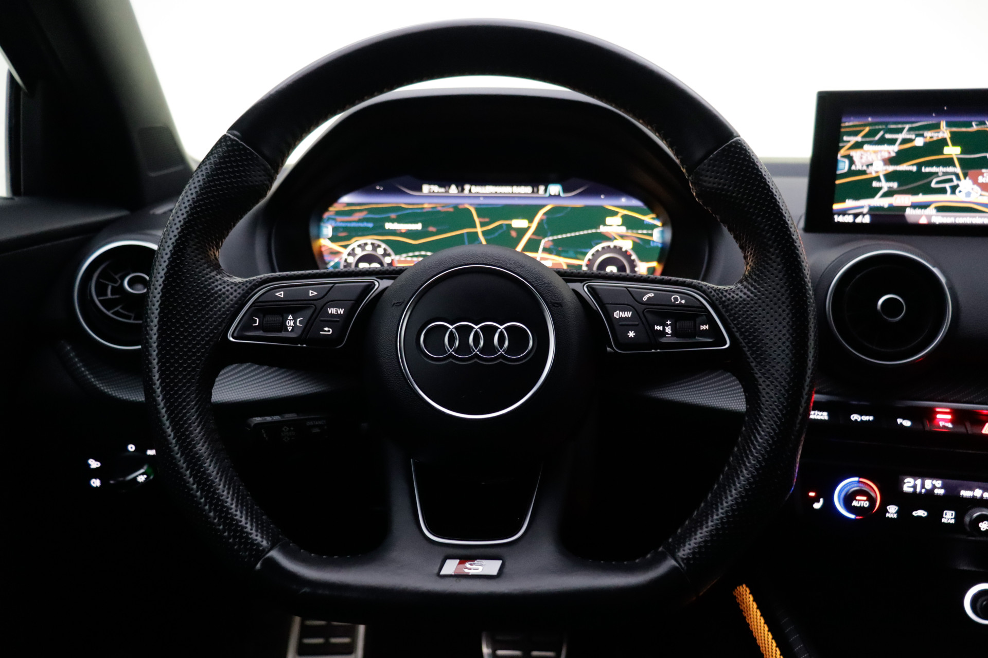 Een cockpit, een informatiecentrum... Wat is de cabine eigenlijk niet? Dankzij het digitale dashboard bent u van alles op de hoogte. Adaptive cruise control houdt de ingestelde snelheid vast en houdt afstand tot het voertuig voor u. De aanwezige file assistent meet de afstand tot uw voorligger en zorgt voor een veilige afstand. Staat het voor u opeens stil? Dan zorgt het systeem dat de auto ook stopt. De geluidskwaliteit aan boord is 'next level' dankzij het high performance audiosysteem. Beste route, verwachte aankomsttijd: uw eigen navigatiesysteem vertelt u alles! De uitrusting van deze auto is met automatische airconditioning, lederen sportstuur, parkeersensoren voor en achter, regensensor, automatisch dimmende buitenspiegels en isofix-aansluiting behoorlijk compleet.