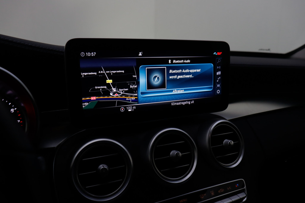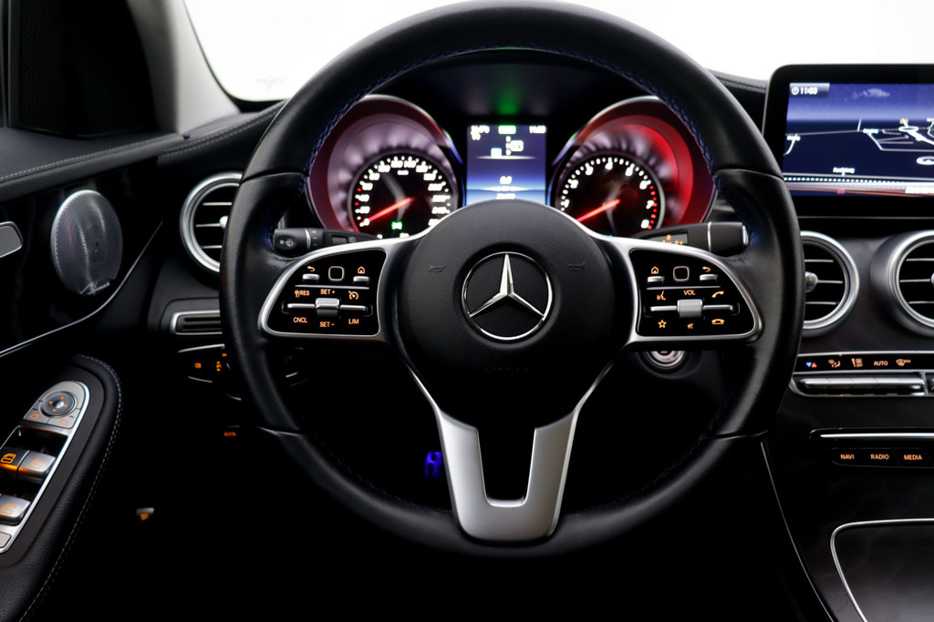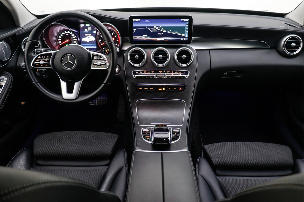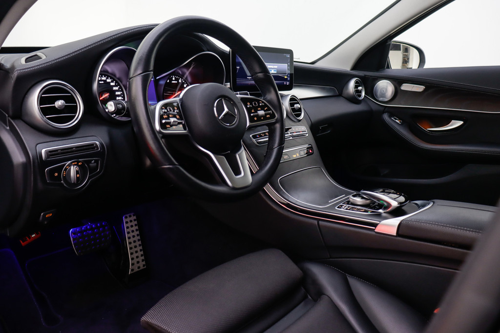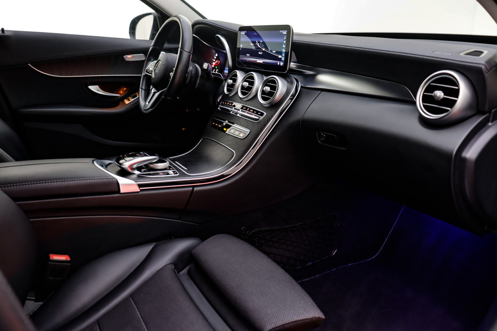 Duitse automerken staan bekend om hun innovatiekracht, topkwaliteit en uitstekende prestaties. Zo ook bij deze Mercedes-Benz C-klasse Estate. Een en al Duitse klasse. De verschillende elementen van de AMG-styling accentueren de dynamische lijnvoering van deze C-klasse Estate. De krachtige benzinemotor van deze auto is gekoppeld aan een automatische transmissie. De lederen bekleding geeft het interieur een hoogwaardige uitstraling. Ga samen met uw bijrijder lekker zitten in de verwarmbare voorstoelen. Voor extra lichtinval en een frisse luchtstroom zorgt het elektrisch bediende panoramadak. Met een druk op de knop gaat de elektrische achterklep open. Opvallend is de geavanceerde matrix LED-verlichting met daglichtkwaliteit. De koplampen dimmen automatisch het deel van de lichtstraal waar voor- of tegenliggers in rijden. De overige segmenten blijven aan en verlichten de weg maximaal. Ook 19 inch lichtmetalen velgen, AMG-styling, sportonderstel, warmtewerend glas, in delen neerklapbare achterbank en LED-achterlichten horen tot de voorzieningen op deze auto.