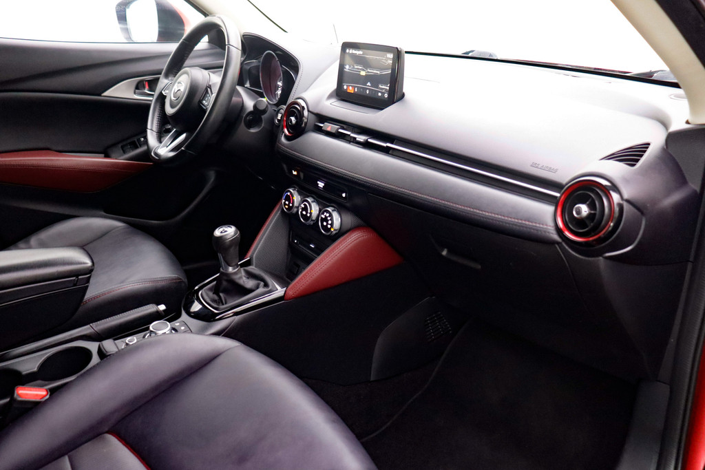 De nieuwste veiligheidssystemen komen in deze Mazda CX-3 samen. Indien u onbedoeld de rijstrook lijkt te verlaten, reageert het Lane-keeping systeem meteen en corrigeert. Bij een gevaarlijke situatie is remmen essentieel. De Brake Assist haalt het maximum uit de remcapaciteiten van deze Mazda CX-3. Met voorzieningen als dodehoekdetectie, hill hold functie en bandenspanningcontrolesysteem, bent u altijd veilig onderweg.