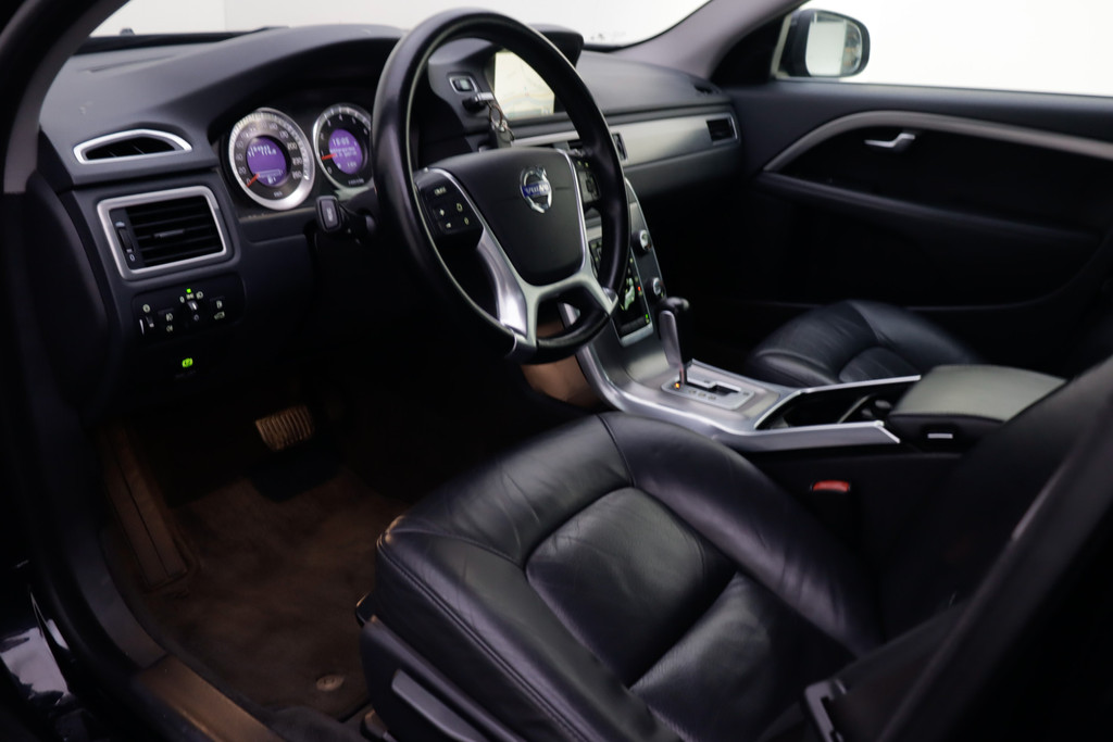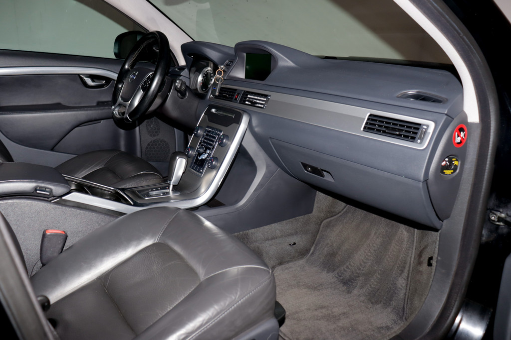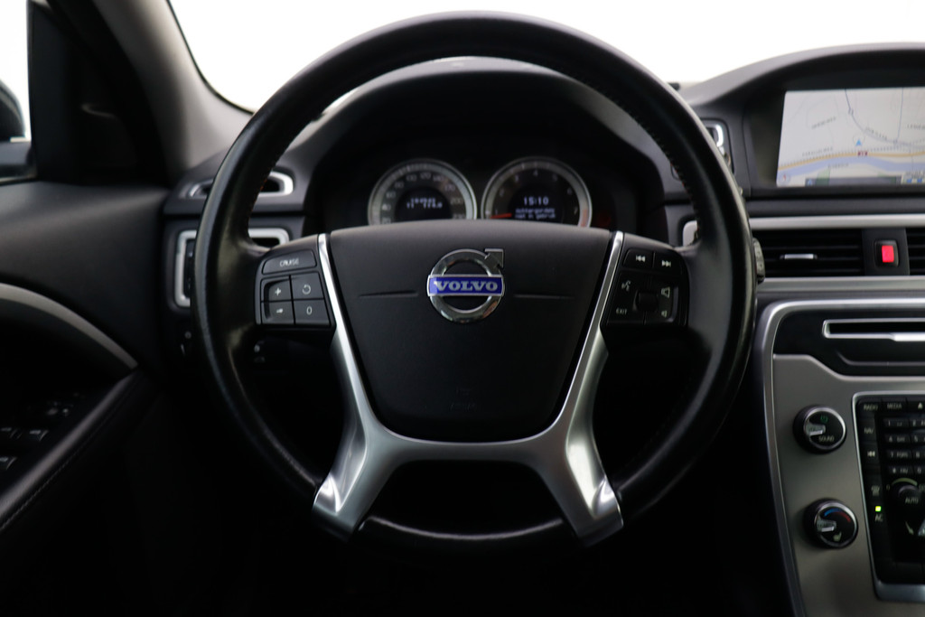 Onderweg kunt u veilig genieten van het audio-installatiesysteem en het navigatiesysteem. Want in deze Volvo bedient u ze vanaf het stuurwiel. Met automatische airconditioning hoeft u alleen de gewenste temperatuur in te stellen. Het systeem doet de rest. Kom-maar-kom-maar...ho! Zo eenvoudig is het voordeel van parkeersensoren. En zo behulpzaam! De regensensor reageert op de neerslag die op de voorruit belandt. Van een paar spatjes tot een hoosbui: de ruitenwissers weten wat ze te doen staat. Lekker koersen op een constante snelheid: daarvoor zorgt de cruise control. De Volvo is standaard voorzien van: automatisch dimmende binnenspiegel, lederen stuur, centrale deurvergrendeling met afstandsbediening, boordcomputer en lederen versnellingspook.