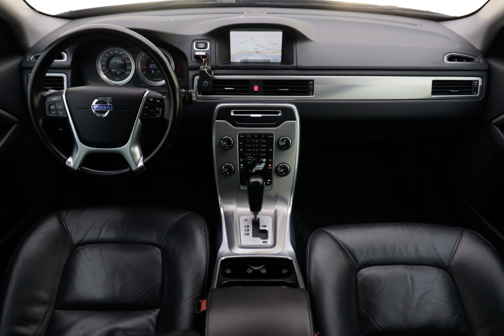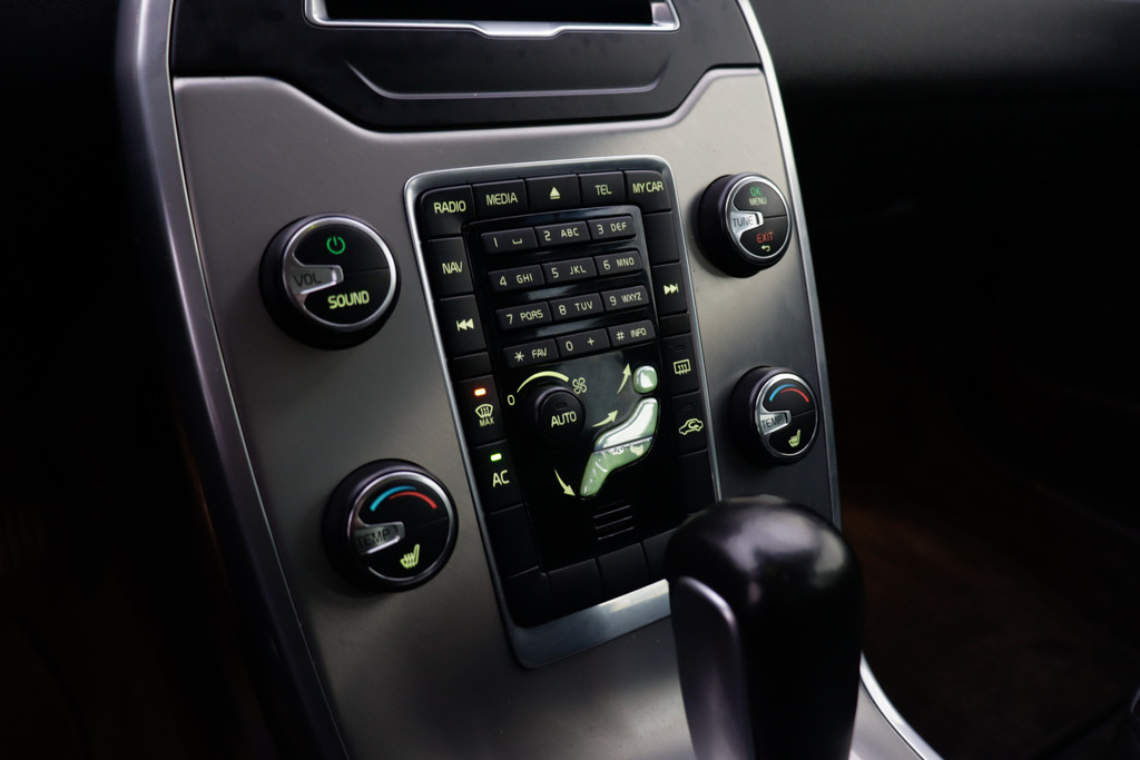 Onderweg kunt u veilig genieten van het audio-installatiesysteem en het navigatiesysteem. Want in deze Volvo bedient u ze vanaf het stuurwiel. Met automatische airconditioning hoeft u alleen de gewenste temperatuur in te stellen. Het systeem doet de rest. Kom-maar-kom-maar...ho! Zo eenvoudig is het voordeel van parkeersensoren. En zo behulpzaam! De regensensor reageert op de neerslag die op de voorruit belandt. Van een paar spatjes tot een hoosbui: de ruitenwissers weten wat ze te doen staat. Lekker koersen op een constante snelheid: daarvoor zorgt de cruise control. De Volvo is standaard voorzien van: automatisch dimmende binnenspiegel, lederen stuur, centrale deurvergrendeling met afstandsbediening, boordcomputer en lederen versnellingspook.