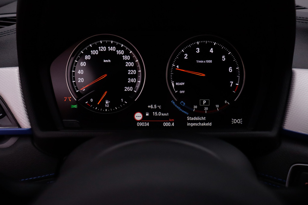 Dankzij de spraaksturing bedient u verschillende functies zonder uw handen van het stuur te halen. Navigatie, onderhoudsstatus, vergrendeling, audio... de mogelijkheden van remote services zijn haast oneindig. Ook deze auto laat zich bedienen en analyseren via uw smartphone! Er is geen bestemming die het aanwezige full map navigatiesysteem niet kent. Dat rijdt lekker! Aan boord van deze BMW X1 is een achteropkomend verkeer waarschuwing voor extra veiligheid. De auto is ook uitgevoerd met automatische airconditioning. De uitrusting van deze auto is met DAB ontvangst, parkeersensoren achter, regensensor, cruise control, sportstuurwiel en isofix-aansluiting behoorlijk compleet.