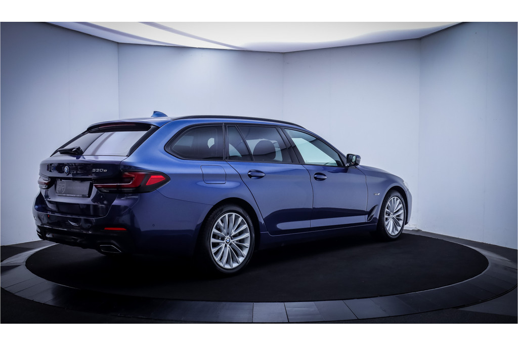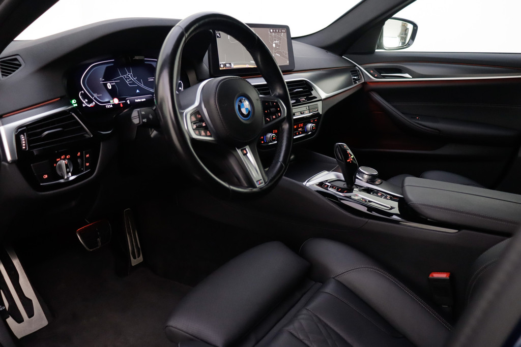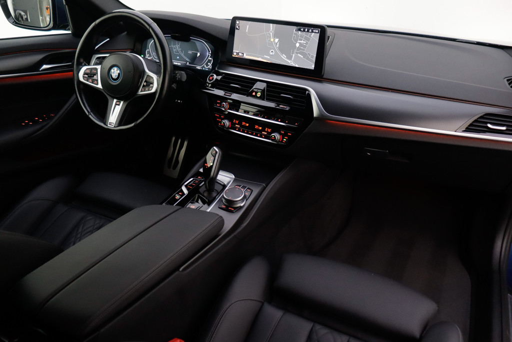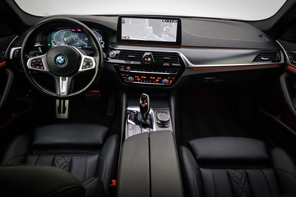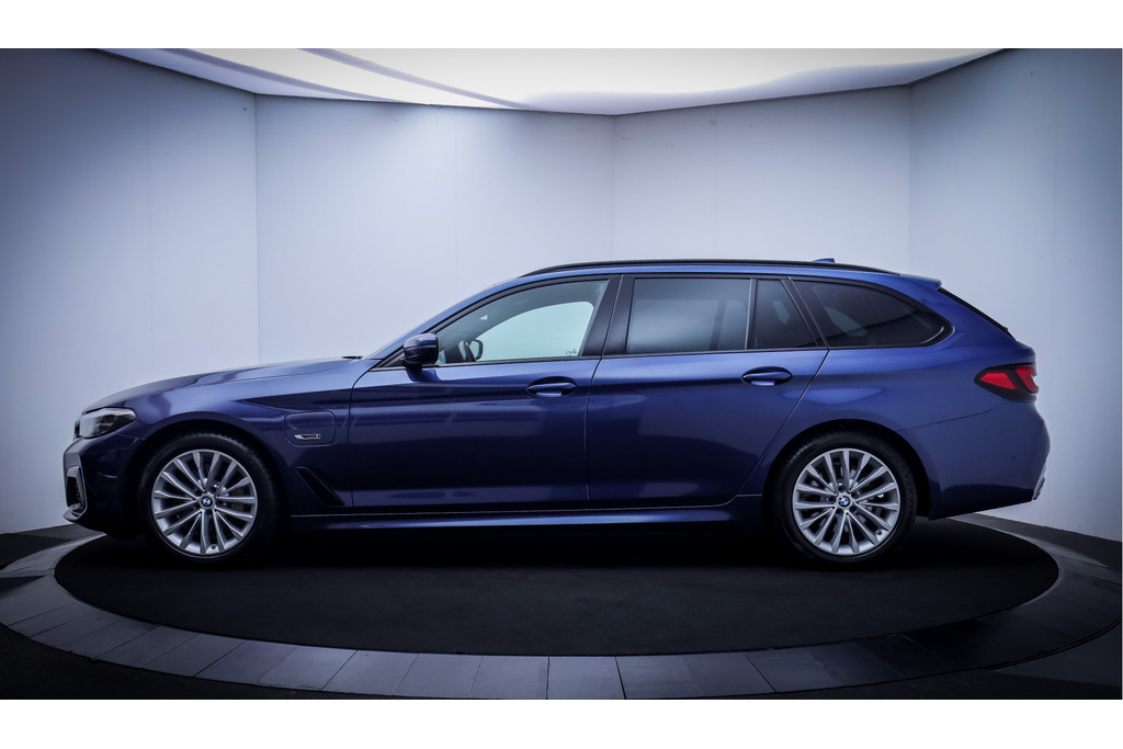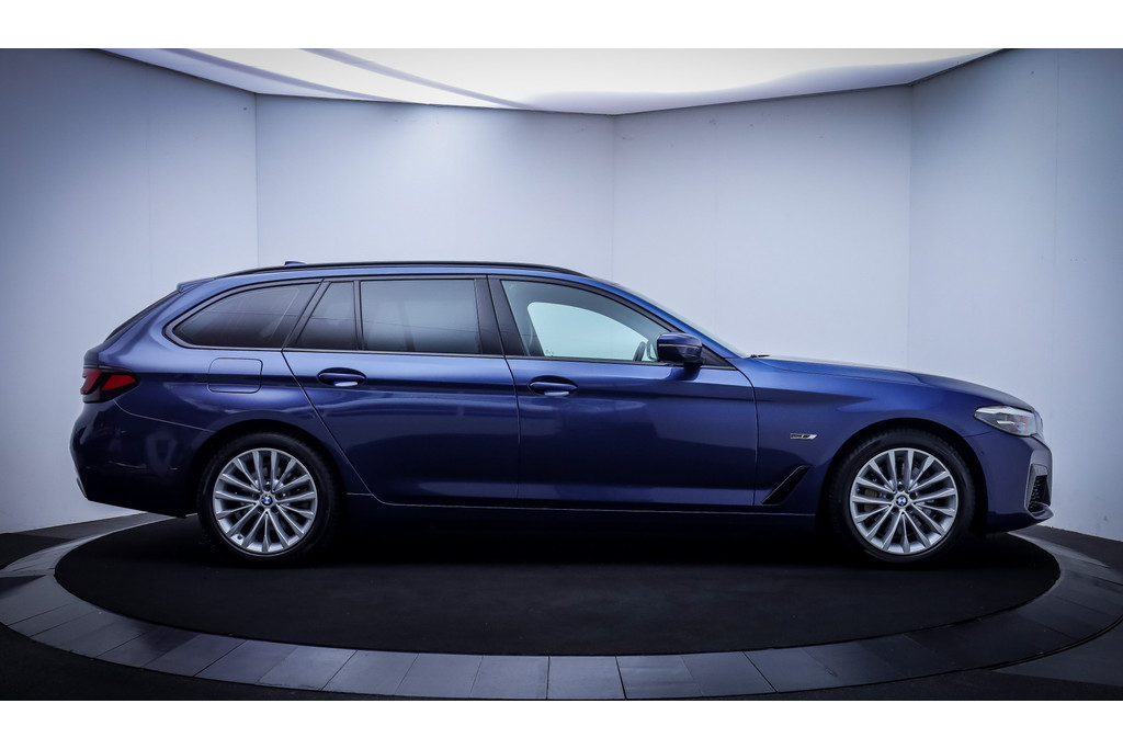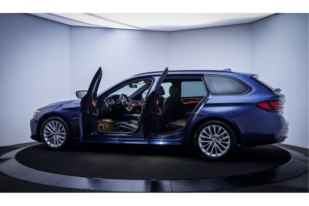 In het moderne verkeer hebt u achter het stuur van de BMW 5-serie Touring altijd de controle. Deze auto komt uit 2021. Deze BMW 5-serie Touring is voorzien van zowel een elektromotor als een verbrandingsmotor. Ideale combi! Het met leer beklede interieur geeft deze auto een gedistingeerde uitstraling. In de verwarmbare voorstoelen zitten is elke keer een welkom gevoel. U blijft ook in de scherpe bochten goed ondersteund door de fraaie sportstoelen. De achterklep opent automatisch met een druk op de knop. Handig als u met volle handen staat. Als de 'r' in de maand zit, komt zo'n verwarmd stuurwiel als geroepen! Bij de rijke uitrusting horen ook 18 inch lichtmetalen velgen, BMW M-sportpakket, adaptieve verlichting, zwarte hemelbekleding, donker getint glas achter en in delen neerklapbare achterbank.