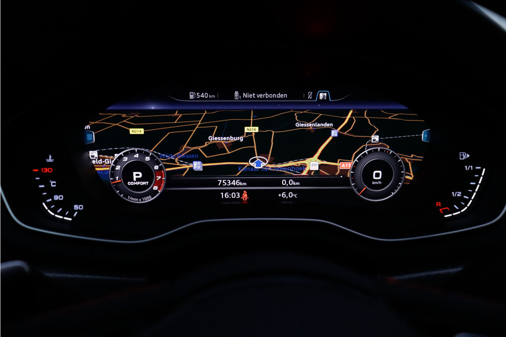 Dankzij het digitale dashboard leest u alle benodigde info gemakkelijk en overzichtelijk af. Of u nu achteruit rijdt, parkeert of een smalle straat inslaat, de 360 graden camera op deze auto, mogelijk gemaakt door vier camera's, biedt een perfect beeld van uw omgeving. Met adaptive cruise control houdt deze auto automatisch afstand tot uw voorligger. Met Connected Services wordt iedere rit nóg veiliger. U kunt het audio-installatiesysteem met DAB-ontvangst en het full map navigatiesysteem bedienen met de knoppen op het stuur of zelf met uw stem. De uitrusting van deze Audi is met electronic climate control, sportstuurwiel, keyless entry, automatisch dimmende binnenspiegel, isofix-aansluiting en centrale deurvergrendeling met afstandsbediening behoorlijk compleet.