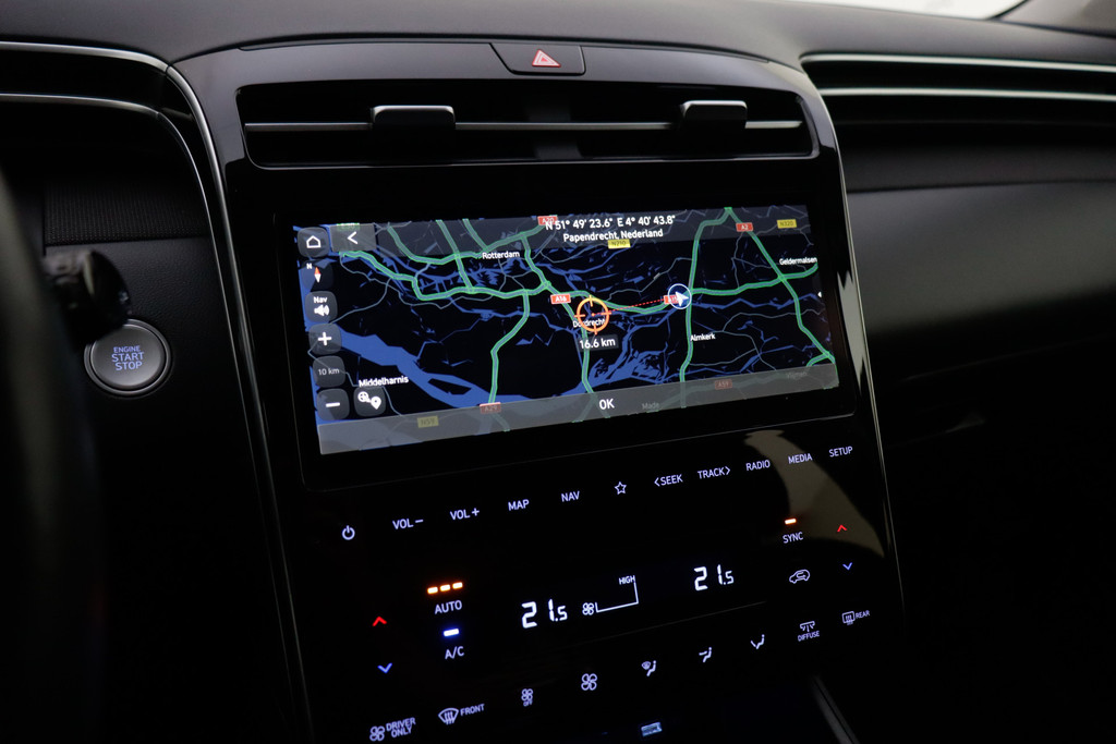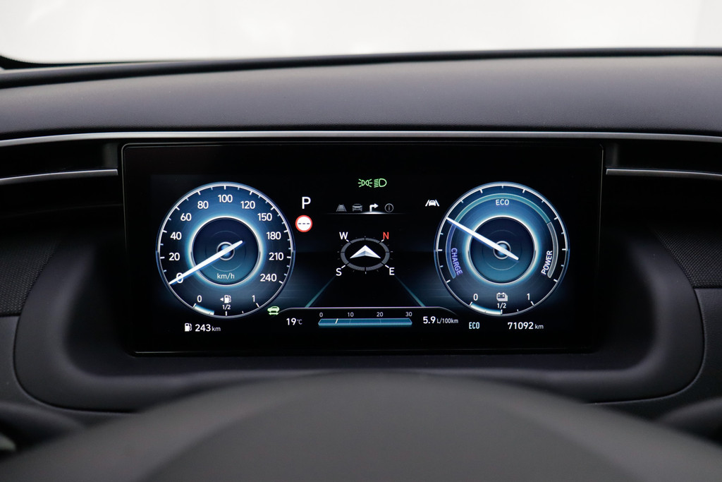 Tijdens de rit wordt u als bestuurder ondersteund door verschillende systemen die de weg en uw omgeving in de gaten houden. Dat de auto steeds meer taken van de bestuurder overneemt, merkt u bijvoorbeeld aan het systeem voor verkeersbord-detectie in deze Hyundai. Deze Hyundai Tucson is ook behulpzaam als het gaat om een rechte koers. Het Lane-keeping systeem signaleert en corrigeert als u onbedoeld de rijstrooklijnen dreigt te overschrijden. Het risico van een kop-staartbotsing wordt aanzienlijk verminderd door de forward collision warning. Ook helpen het hill hold functie, vermoeidheidsherkenning, autonoom remsysteem en bandenspanningcontrolesysteem, uw rit tot een veilige rit te maken.