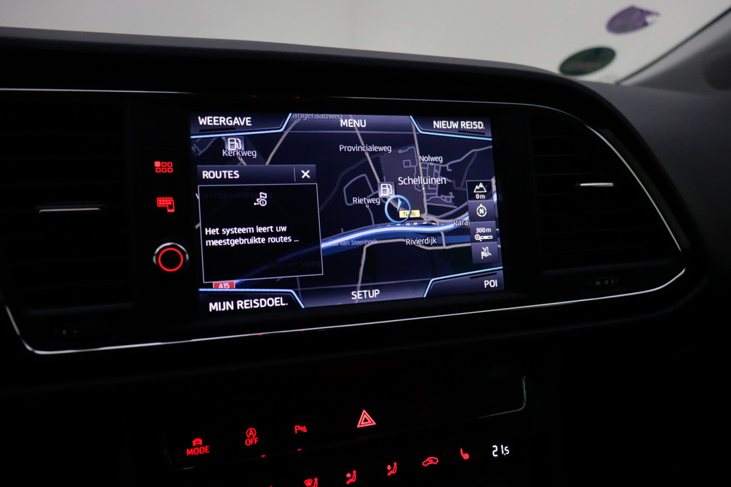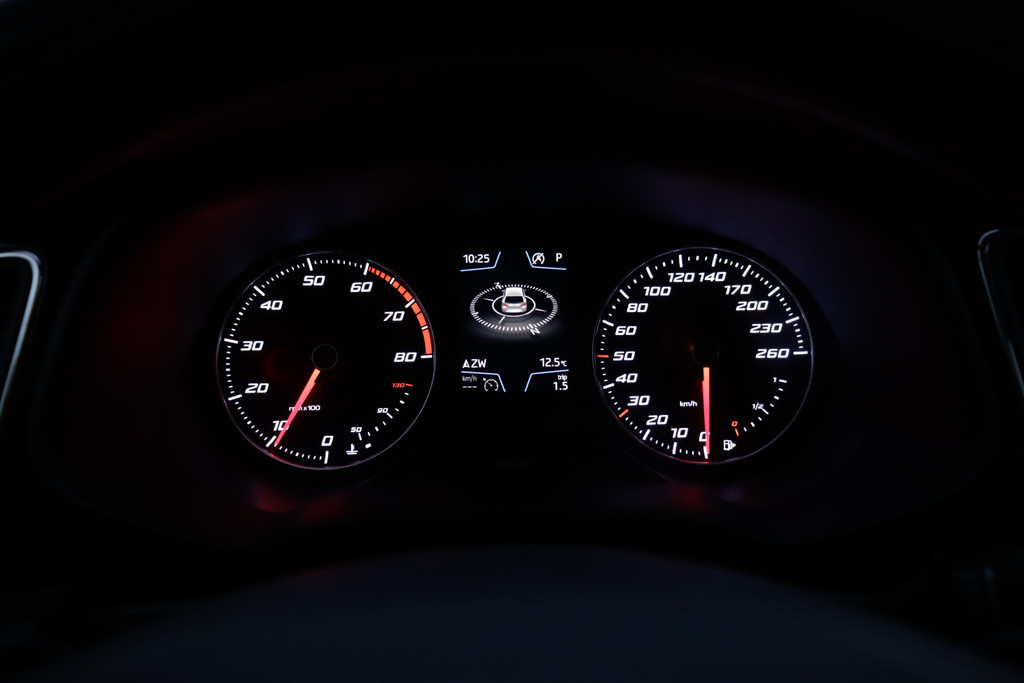 Adaptive cruise control houdt de ingestelde snelheid vast en houdt automatisch afstand tot uw voorligger. Filerijden? Doodvermoeiend. Daarom helpt de file assistent zo nodig een handje. Door automatisch afstand te houden, en te stoppen als uw voorligger stilstaat. Terwijl het navigatiesysteem de ideale route voor u uitstippelt, geniet u van de kwaliteit van het audio-installatiesysteem. De bediening is bovendien gemakkelijk via knoppen op het stuur of via spraak. Of het buiten nu warm is of koud, dankzij automatische airconditioning is het binnen altijd behaaglijk. Parkeersensoren ondersteunen u tijdens het in- en uitparkeren. Deze SEAT is voorzien van schakelpaddles aan het stuur, regensensor, automatisch dimmende binnenspiegel, centrale deurvergrendeling met afstandsbediening, boordcomputer en lederen versnellingspook.