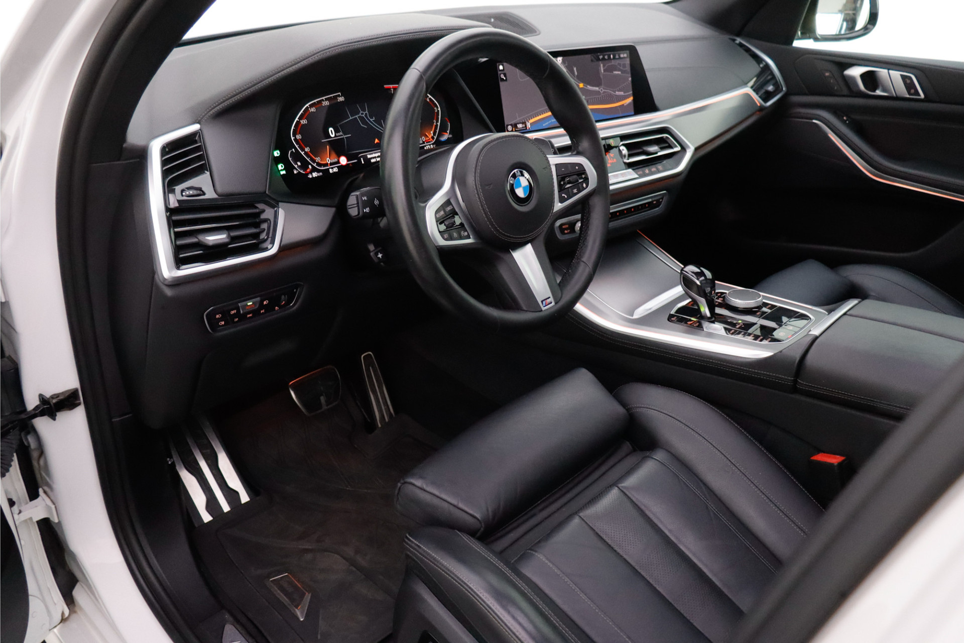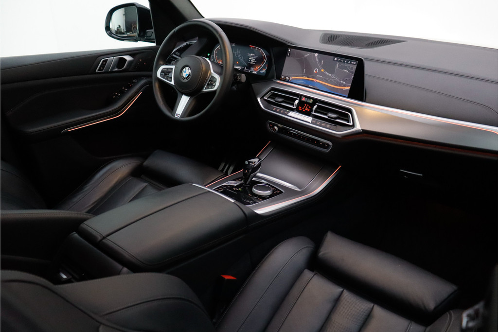 Als toonbeeld van Duitse kwaliteit, laat deze BMW X5 met zijn aantrekkelijk design en comfortabel interieur in elk detail zijn topklasse zien. De aandrijving komt voor rekening van een benzinemotor en een automatische transmissie. Solide op nat asfalt en regenklinkers, maar net zo onverschrokken op de onverharde weg: de vierwielaandrijving trekt je overal doorheen. De luxe van het lederen interieur, gecombineerd met het gemak van het elektrisch bediende glazen panorama dak en de superhandige elektrisch bedienbare achterklep zorgen voor een wel heel complete uitvoering. U past de stoelen moeiteloos aan, ze zijn elektrisch in te stellen en hebben bovendien een geheugen. Natuurlijk behoren 22 inch lichtmetalen velgen, LED koplampen, BMW M-sportpakket, adaptief dempingsysteem, zwarte hemelbekleding en donker getint glas achter ook tot de uitrusting van deze complete auto.