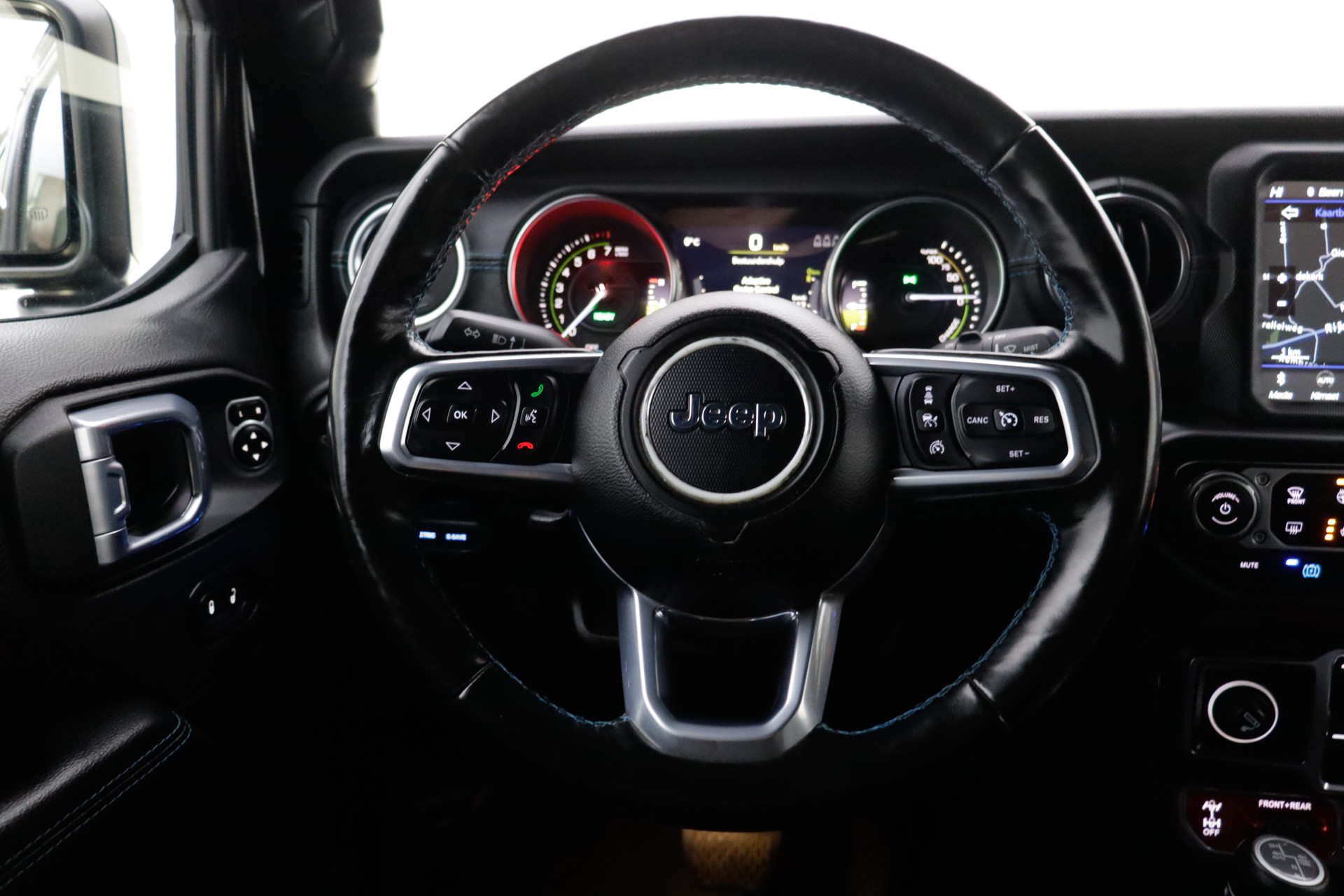 Soepel inparkeren gaat gemakkelijker dan u verwacht dankzij de achteruitrijcamera. Adaptive cruise control is veilig en comfortabel. De snelheidsregelaar houdt automatisch afstand tot het voertuig dat voor u rijdt. Als u regelmatig met een aanhanger of een fietsendrager op pad bent, is de afneembare trekhaak een praktische extra. In het zeldzame geval van een storing weet u nog eerder dan de monteur wat er mankeert. Uw smartphone met remote services geeft direct inzicht. Een massieve sound of fluisterzachte verstaanbaarheid? Het high performance audiosysteem presteert op topniveau. Ook is de Jeep uitgerust met: full map navigatiesysteem, automatische airconditioning, keyless entry, automatisch dimmende binnenspiegel, lederen stuur en centrale deurvergrendeling met afstandsbediening.