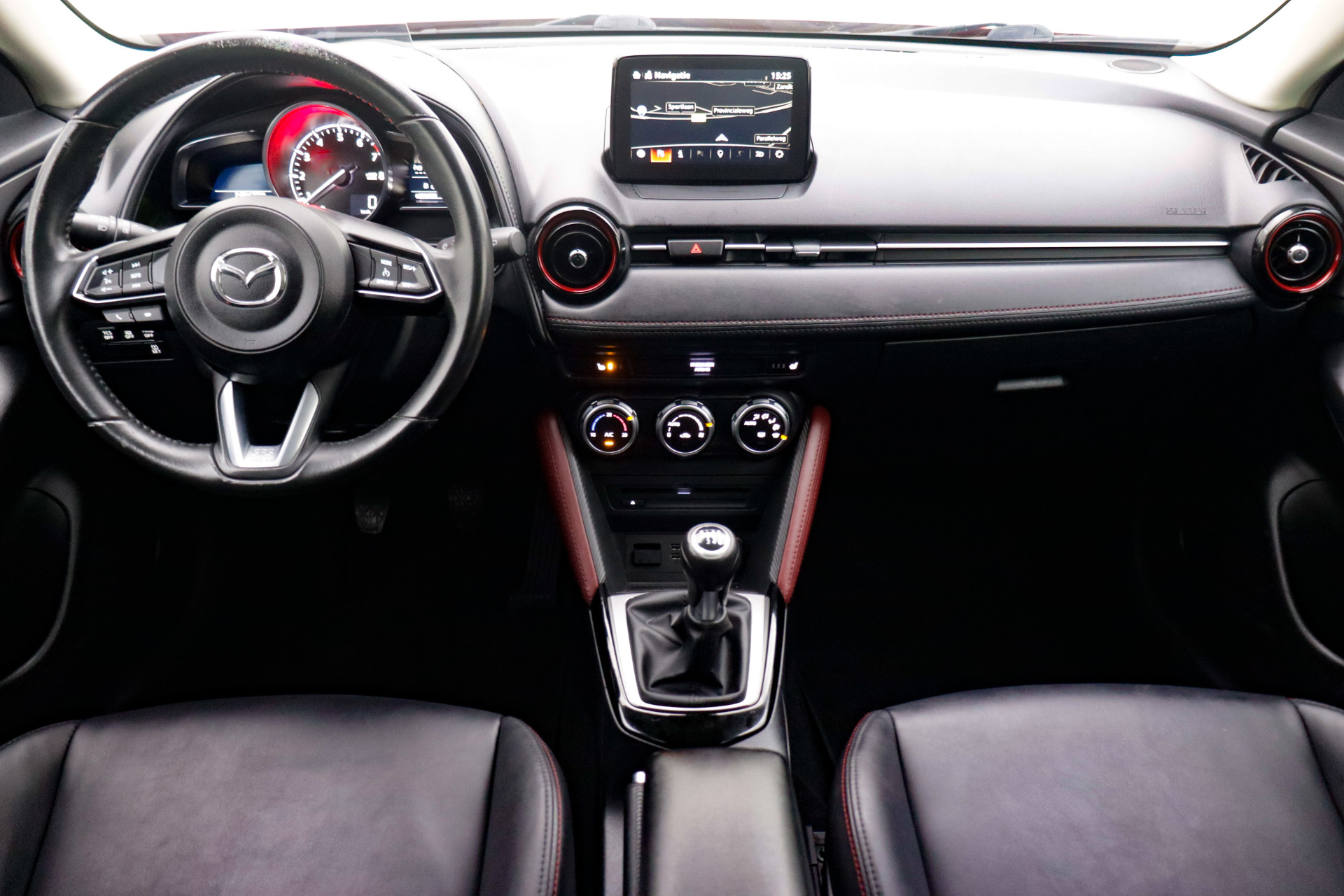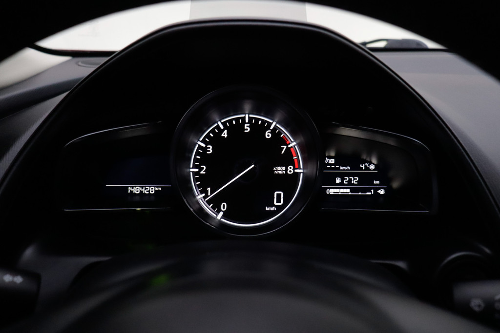 Nooit meer problemen bij achteruitrijden of inparkeren. De achteruitrijcamera houdt alles in de gaten! U bedient het audiosysteem met DAB-radio via knoppen op het stuur of met uw stem. Zo kunt u steeds uw aandacht gericht houden op de weg. Wanneer u links afslaat, analyseert de kruisend verkeer detectie uw rijrichting en anticipeert op mogelijke tegenliggers. Dreigt een aanrijding, dan reageert het systeem direct. De automatische airconditioning zorgt voor een behaaglijk klimaat in de auto. In deze Mazda kunt u zich concentreren op het verkeer, terwijl de auto de omgeving voor u in de gaten houdt. Een automatisch inschakelbare verlichting zorgt dat de verlichting aangaat als het donkerder wordt - in tunnels bijvoorbeeld - en de regensensor schakelt de ruitenwissers in als het nodig is. U hoeft er niets aan te doen. Extra opties op deze auto zijn: cruise control, centrale deurvergrendeling met afstandsbediening, boordcomputer en verstelbaar stuur.