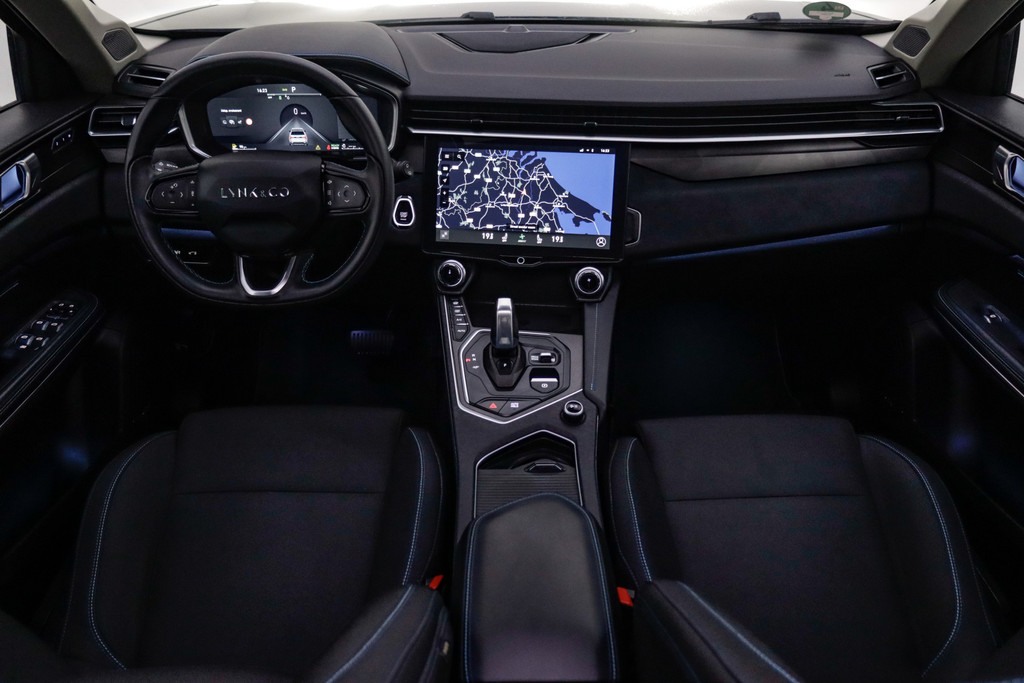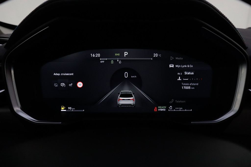 De indeling van het digitale dashboard is zo ingericht dat u met één blik precies weet wat u weten wilt. Zodra u naar de 'R' schakelt, gaat de achteruitrijcamera in werking en heeft u een perfect zicht op alles wat zich achter de auto afspeelt. Adaptive cruise control houdt de ingestelde snelheid vast en houdt automatisch afstand tot uw voorligger. Na een lange werkdag in de file: daar zit niemand op te wachten. Gelukkig helpt de file assistent een handje. Het radarsysteem meet de ruimte tot de voorligger en bewaakt de juiste afstand. Stilstaan? Dan remt en stopt de auto vanzelf. Ingebouwde spraakbediening maakt het mogelijk om de auto te bedienen zonder dat uw aandacht wordt afgeleid. De Lynk & Co is standaard voorzien van: full map navigatiesysteem, WIFI-hotspot, achteropkomend verkeer waarschuwing, automatische airconditioning, draadloos opladen en DAB ontvangst.