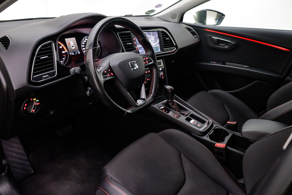 Adaptive cruise control houdt de ingestelde snelheid vast en houdt automatisch afstand tot uw voorligger. Filerijden? Doodvermoeiend. Daarom helpt de file assistent zo nodig een handje. Door automatisch afstand te houden, en te stoppen als uw voorligger stilstaat. Terwijl het navigatiesysteem de ideale route voor u uitstippelt, geniet u van de kwaliteit van het audio-installatiesysteem. De bediening is bovendien gemakkelijk via knoppen op het stuur of via spraak. Of het buiten nu warm is of koud, dankzij automatische airconditioning is het binnen altijd behaaglijk. Parkeersensoren ondersteunen u tijdens het in- en uitparkeren. Deze SEAT is voorzien van schakelpaddles aan het stuur, regensensor, automatisch dimmende binnenspiegel, centrale deurvergrendeling met afstandsbediening, boordcomputer en lederen versnellingspook.
